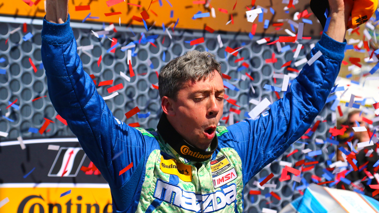 The effort culminated in a championship for Stevan McAleer and Chad McCumbee (who together own an MX-5 Cup team) and CJ Wilson Racing in 2017. Freedom Autosport’s participation also produced several highlights, not the least of which is Long and Iraq war veteran and amputee Liam Dwyer (below) taking a victory and leading a Mazda podium sweep at Lime Rock Park on Memorial Day weekend in 2014.