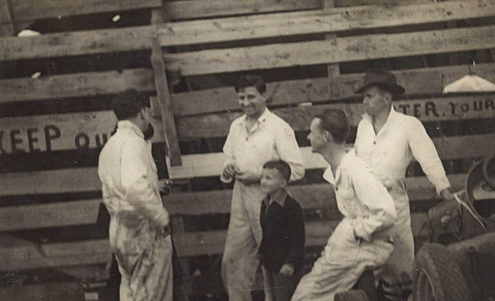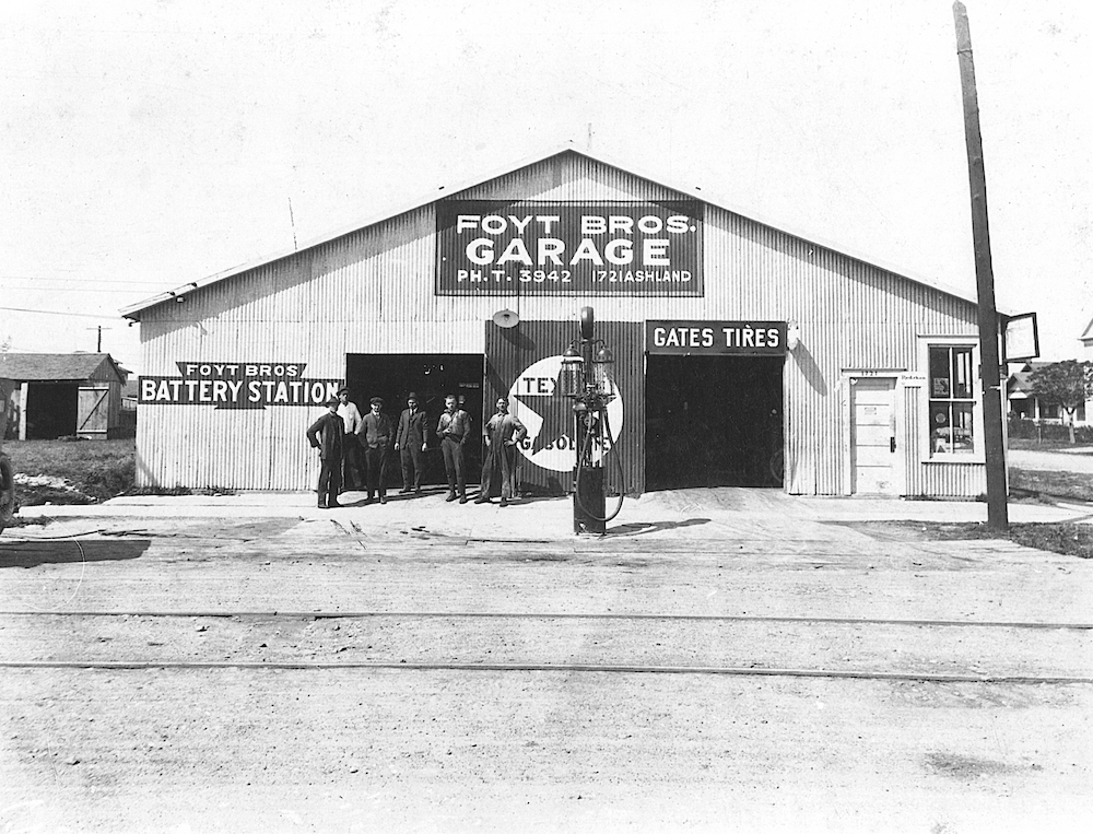 The Foyt Brothers Garage. That’s believed to be A.J.’s grandfather, Thomas Foyt (far left) with his hands on his hips. Foyt Family Collection