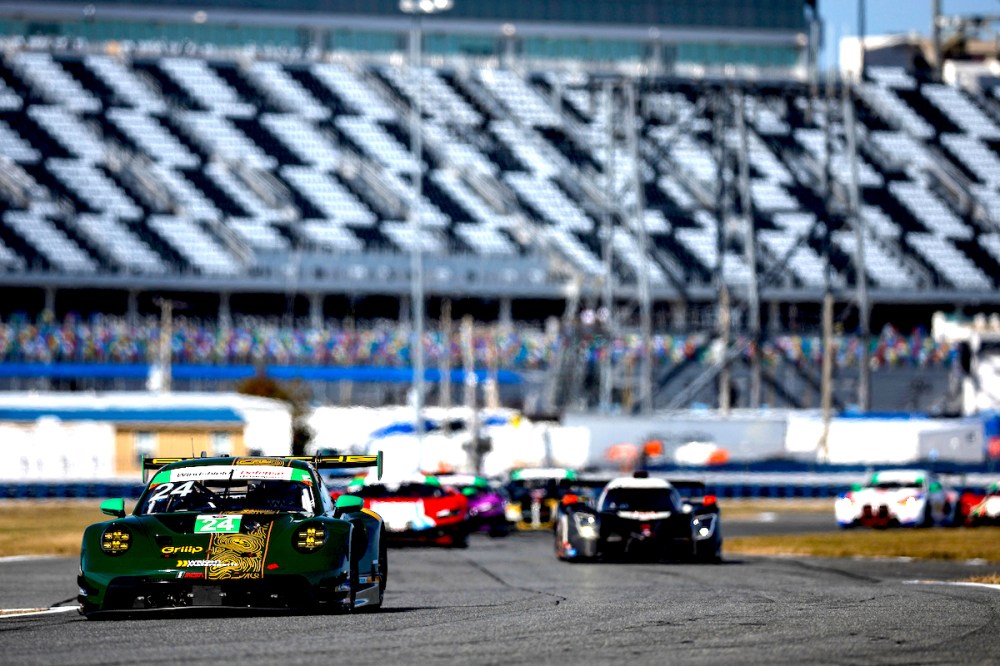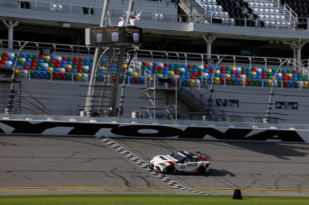 A race-long battle between a pair of Toyota GR Supra GT4 EVO2 cars, Porto in the No. 8 RAFA Racing entry and Steven Clemons in the No. 76 BSI Racing entry, ended when Clemons’ car slowed entering NASCAR Turns 3 and 4 of the Daytona International Speedway oval, and Porto flew past.