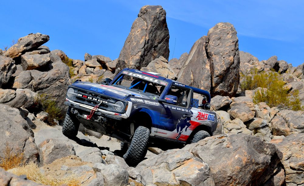 The commitment by Ford and Ford Performance to King of the Hammers competition was evident by Brad Lovell’s overall victory on Friday’s Yokohama Tire Every Man Challenge race. A 2022 Off-Road Motorsports Hall of Fame inductee, Lovell piloted his No. 4621 Amsoil Ford Bronco with son Adam as his navigator to a surprise win in the 4600 Stock class. The duo defeated all the 4800 Legends and 4500 Modified entries, that, on paper, offer far more capability and performance.