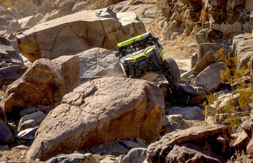 In an unusual move by race promoter Dave Cole, this year’s third lap was plotted over some virgin rock trails and kept secret until just before the race. Gomez was the first to enter the new section, which proved as much of a navigational challenge as a driving one. Close behind was former king Josh Blyler, followed by the Can-Am of Chaney and navigator Terry Madden before a second Can-Am of Cody Miller.