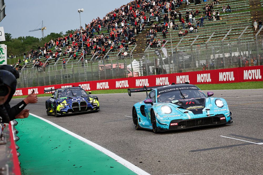 In LMGT3, the fight for the victory at the Autodromo Enzo e Dino Ferrari went down to the wire, too, with Richard Lietz holding off a feisty attack from Kelvin van der Linde to deliver Manthey 1st Phorm a fine victory in the No. 92 Porsche.