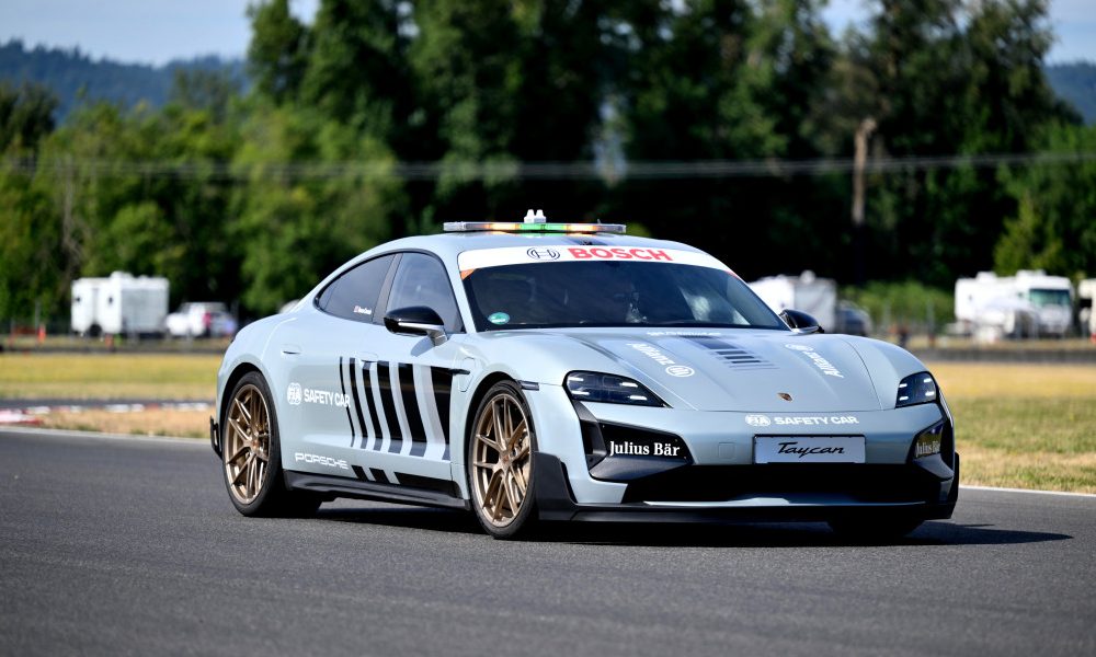 Performance electric road cars – such as the Porsche Taycan Turbo GT with Weissach package used as the Formula E safety car – are almost all four-wheel-drive. Simon Galloway/Motorspoort Images