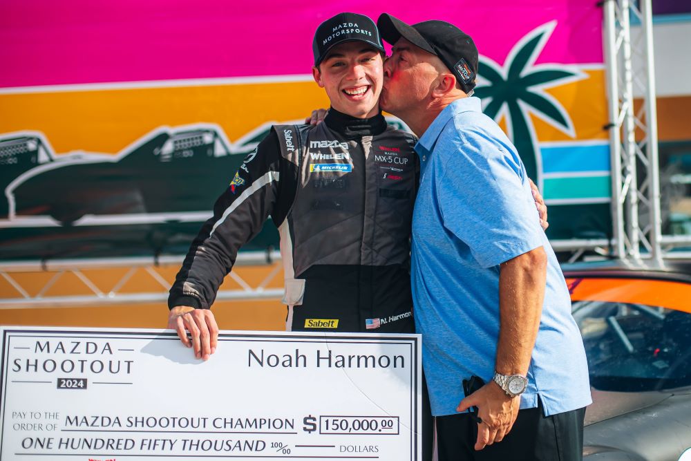 “After the Shootout, my dad and I were just super happy,” says Harmon. “I mean, he was crying because it meant everything that the last three years has been about trying to win it. So, it was just a lot of stress and expectation for us to know we had a good shot at it this year and it meant so much. I have to also thank Bob and Donna Mueller of Street Side Classics for their support, because I think just getting time in the MX-5 Cup car was the biggest thing — getting time testing in it this year and doing some races.”