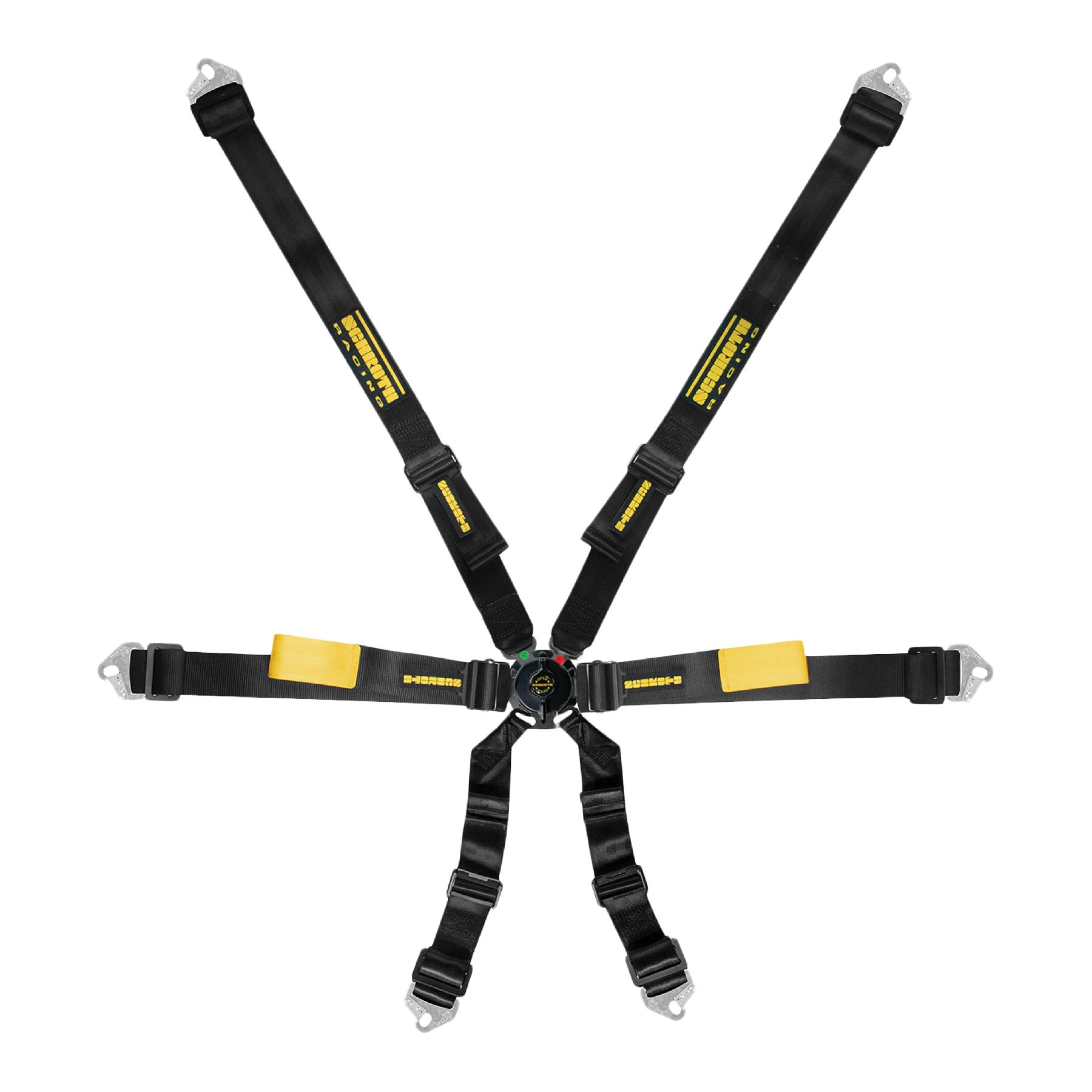Racing harness manufacturers use a variety of methods for releasing belts from the buckle; the most common in the tight confines of an open-wheel cockpit is a lever that sits atop the buckle. When strapping the driver into the car, the six belts clip into the buckle, and to undo the belts, the lever is twisted — just like turning a handle on a door, which pulls the bolt out of the groove in the wall — and allows the belts to be released.