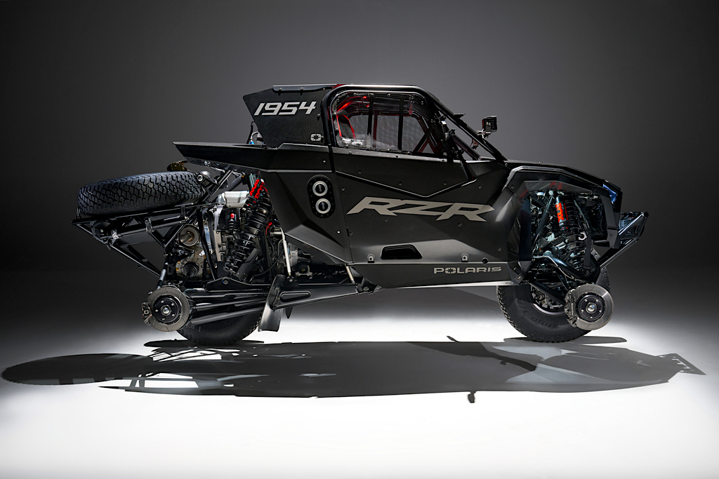Engineered by Polaris’ in-house RZR Racing division, the car incorporates the latest in suspension control technology thanks to FOX Live Valve X2 shocks and a DYNAMIX DV semi-active control system that includes a “Baja Mode” for proper desert shock settings. A MoTeC system offers real-time control and performance data logging, while military-spec wiring and a lightweight lithium battery align with the best of modern motorsports advancements.