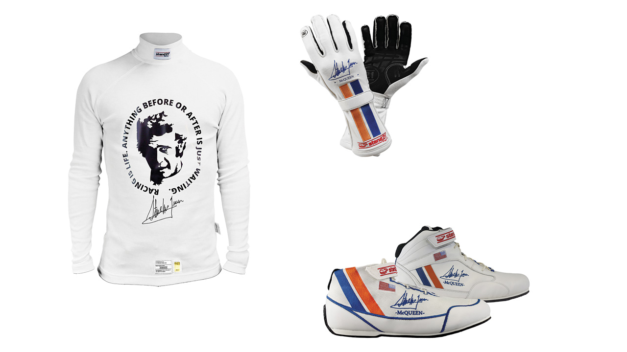 The Steve McQueen Special Collection includes travel bag, gloves, boots and fire-retardant underwear.