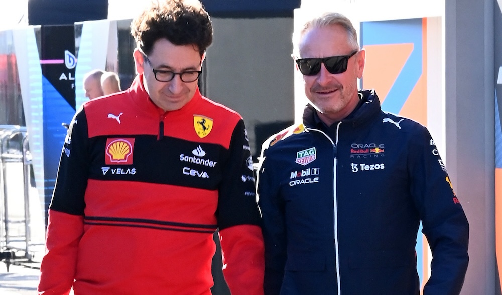 Mattia Binotto (left) with Jonathan Wheatley in 2022. Mark Sutton/Motorsport Images