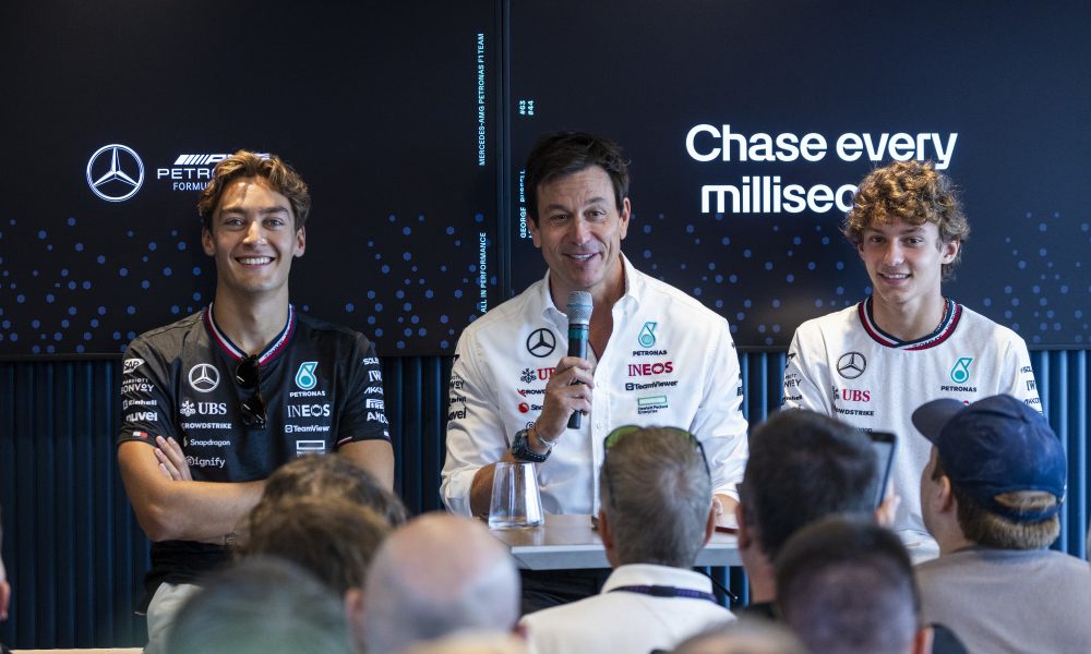 “You can’t talk about yourself because you come across like a t***!” Wolff said when summing up Antonelli in front of a packed house in Monza. “I think what to say about Kimi… a perfect family background. His family knows everything about racing that you need to know as a driver and outside.